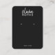 Simple black background earring display holder with two printed hole "markers". Rounded corners and handwritten typography.
