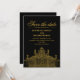 Simple Modern Black & Gold Save The Date Invitation featuring vintage Golden grand gate on simple Black background with simple and elegant Golden typography. It is a beautiful and unique royal theme wedding card. Customise all the text on this card. You can customise it by pressing the (Personalise) button. If you want to customise it more then goto (Click to customise further) option. Dimension: 5" x 7" Customisable: Yes, Create your own. -- THE PERFECTION --