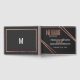 Elegant, chic, and modern black and faux printed rose gold linear striped and outline detail with rose gold typography on a black background, wedding guestbook. This classic and sophisticated design is perfect for the trendy and stylish marrying couple. Personalise with your own message on the front as well as a customised monogram initial on the back. All photo print design.