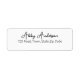 Simple, modern, minimalist and very elegant black script typography on white background return address labels, Chic, custom made and personalised with your name and address.