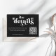 This simple modern wedding RSVP enclosure card has an elegant, decorative serif font and classic standard typographic fonts (Futura and Garamond Italic). Put your wedding website and qr code on it.