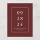 Simple Modern Burgundy Red Wedding Save the Date Postcard