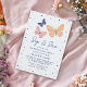 This modern sip and see invitation brings a fresh twist to a classic theme with its minimalist butterfly design in trendy blush, peach, and deep navy tones. Set against a crisp white background with scattered polka dots, the layout feels light, stylish, and playful without being overly sweet. A hand-lettered "Sip and See" sets the right tone, while the coordinating butterfly pattern on the back ties the look together effortlessly. Perfect for parents who love clean aesthetics or non-specific theme parties with a touch of whimsy and nature-inspired flair.