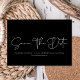 This modern yet elegant save the date announcement features a simple black background and a large script "Save the Date" in white. The back of the card is blank so you can add more text and/or photos if desired. **ALL colours are customisable - background colour, text colour, even the calligraphy script colour! Just click "customise design further" in the dropdown menu.**