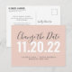 Simple Modern Change of Date Wedding Postponement Blush Pink Announcement Postcard