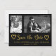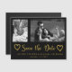 Modern faux gold glitter brush script black save the date wedding magnetic card with 2 photos collage - one vertical / portrait orientated and the other horizontal / landscape. and two doddle hearts. ++++++++++++++ Personalise it with your photos, names and wedding date!