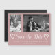Modern dusty rose brush script fancy save the date wedding with 2 photos collage - one vertical / portrait orientated and the other horizontal / landscape and two doddle hearts. ++++++++++++++ Personalise it with your photos, names and wedding date!