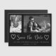 Modern faux silver glitter grey brush script black save the date wedding magnetic card with 2 photos collage - one vertical / portrait orientated and the other horizontal / landscape and two doddle hearts. ++++++++++++++ Personalise it with your photos, names and wedding date!