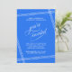 Simple and elegant with contemporary flair, this Retirement Party Invitation features white angled lines framing your text over a trendy cobalt blue background. The "you're invited" text in lovely script flourishes is intentionally featured prominently to make your invited guests feel special. Edit the party details with your specifics. Shown here as a Retirement Party Celebration, you can edit this text for any occasion! The invitation may be ordered as printed and/or paperless digital download for your convenience.