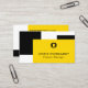A professional business card with a pop of colour in a simple yet bold school bus yellow, white, and black colour block pattern makes a striking card with graphic appeal. Suitable for any type of business, there is a sample decorative logo on the front that you can replace with your logo or leave as is. Personalise with your name and details.