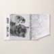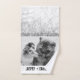 Add your own photo and text to create a unique photo gift. This bathroom hand towel is ready to be customised with your photo and your own names or message in distressed black typewriter style lettering. The simple, modern black and white style looks great with black and white or colour photos. Show off a favourite photo of your pets, a family photo or a vacation memory.