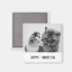 Add your own photo and text to create a unique photo gift. This refrigerator magnet is ready to be customised with your photo and your own names or message in distressed black typewriter style lettering. The simple, modern black and white style looks great with black and white or colour photos. Show off a favourite photo of your pets, a family photo or a vacation memory.