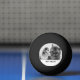 Add your own photo and text to create a unique photo gift. This ping pong ball is ready to be customised with your photo and your own names or message in distressed black typewriter style lettering. The simple, modern black and white style looks great with black and white or colour photos. Show off a favourite photo of your pets, a family photo or a vacation memory.
