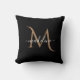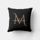 Simple Modern Decorative Black Gold Monogram Throw Pillow