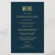 Simple Modern Deep Blue Gold Elegant Wedding Menu