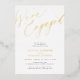 Simple minimal chic whimsical calligraphy real gold foil and white we're engaged script contemporary engagement party invitation. +++++++++++ Easy to personalise with your details! The invitation is suitable for stylish luxury engagement parties. +++++++++++++++ You can choose the colour of the foil: GOLD, ROSE GOLD, or SILVER. Please note that the background colour can also be changed to match your wedding colour scheme. If comfortable doing it, you can change it after selecting CUSTOMIZE IT option. +++++++++ If you need help in changing the colour palette, please send an email to the designer at designer@sunflowersandcheers.com BEFORE PLACING THE ORDER