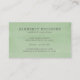 Business card featuring a simple design with a rustic watercolor greenery sprig with large leaves, over a white background. Below are your name and title.  The backside has your contact information over a green watercolor wash.  This elegant botanical design is great for many professions.