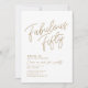 Simple white & gold "Fabulous Fifty" personalised 50th birthday invitation with classy and modern typography. Customise it easily with name, age, and party details.