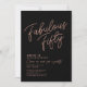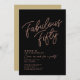 Simple black & rose gold "Fabulous Fifty" personalised 50th birthday invitation with classy and modern typography. Customise it easily with name, age, and party details.