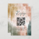 An elegant, modern and chic wedding Rsvp card in fall wedding colour background of honey gold, forest green and rust orange in a fun and light vertical watercolor brush strokes.
