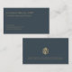 Make a lasting impression with our Simple Modern Financial Services Business Cards featuring classic typography on a sleek blue-grey background. The back features a striking gold geometric emblem that can be replaced with your logo, along with space for an industry disclaimer. Perfect for business professionals looking to make a lasting impression.