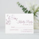 Elegant and minimalist RSVP card featuring a beautiful and delicate dusty purple orchids line drawing design at the top, over a classy white background. Easily edit the template fields to add your text in a modern and simple pastel purple all-caps font.