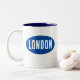 A nice blue and white mug that says London on it. A great souvenir and simply a nice item to have for those that love the city.