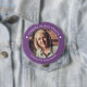 Simple, modern white and purple pin-on button for a funeral or memorial service to pay tribute to a loved one who has passed away, featuring a photo with the words "FOREVER IN OUR HEARTS" and your loved one's name. If you need any help customizing this, please message me using the button below and I'll be happy to help.