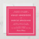 This bold hot coral pink square wedding invitation pops with style and adds excitement for your invited guests as they anticipate your big day. Along with the bold colour scheme, a simple elegant triple border frame in white surrounds your wedding invitation text in classic style. White text in a contemporary type face conveys your details in beautiful contrast to the bold background colour. Personalise the easy-to-use text template with your wedding details.