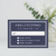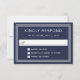 A simple elegant white triple border frame surrounds your text in classic style in this wedding RSVP response card. Shown here in navy blue with white text in a contemporary type face. Personalise with your required response date.