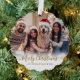 Simple Modern Gold Script 2 Photo Christmas Tree Decoration Card