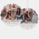 Modern Cute Minimalist Gold Script 2 Photo Merry Christmas Script Holiday Ornament Card. This festive, simple minimalist, whimsical two photo holiday greeting card template features „Merry Christmas” greeting text which is written in a hand lettered swirly swash-tail font gold calligraphy script photo overlay. On the back side with your greeting message template with a little heart doodle and one photo template. Pretty greeting card for your family and friends in Christmas Holiday season.