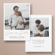 The back of the card includes space for a second photo and your custom message on the back The default text colour of the text on the back is black. You might choose to delete something or change a text field on the front or back to an entirely a different message. The background on both sides is set as transparent to let the colour of the paper simply serve as the base tone, but you can edit this and choose a specific colour on one or both sides if you prefer. We've added some sample text on the back for you to edit according to your needs. Instead of entering your own wedding website address, you might decide to delete our sample website address and the line above it without replacing those parts of the design. And instead of editing our sample text on the back with your own message, you can also simply delete all of that text and leave the back of the card blank except for your photo, perhaps to hand write your own message later, or to send without any text on the back. You can also delete our sample photo without replacing it if you don't want to add a second photo in addition to the one on the front. The default paper type, matte, has a soft warmth to it and resists smudging, so it's a great choice for writing your own message. You can edit this and choose semi-gloss or upgrade to another paper type instead. In any case, please do remember to delete all of our sample text on both sides as well as our sample photos. Customise this stylish modern two photo wedding save the date flat card template with the intuitive editing tools, your favourite photos and your inspiration and make it uniquely yours!
