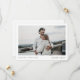 This simple, stylish modern photo wedding save the date flat card template features your names in a lively modern handwriting script that feels both familiar and sophisticated all at once beneath your photo. We've highlighted this script with an elegant medium dark shade of green. This design looks great with either sharp or rounded corners, try both looks in editing mode to see which grabs you! You might choose to change the font, punctuation or colour used for various text elements of this design on the front and/or back. For example, you might choose to give a different colour to your name text, or change the Save the Date text below the photo to Save our Date or something else entirely. We've placed a vertical line between the Save the Date text and the text for your date next to it. You might choose to replace this line with a forward slash in order to somewhat mimic the font we've chosen, or another symbol such as a centred dot, like a bullet. Or you might simply delete the vertical line without replacing it, for an even simpler look. On the back we chose an atypical order for the information, putting the 'save the date' text after the 'for the wedding of' text, which lends a path less travelled charm to it. You can easily alter this order or change anything else to suit your needs. On both sides, we've made the background transparent to let the colour of the paper simply serve as the base tone. You can easily change this by either picking one of the basic colours in the editing tools or entering a colour number if you have a specific hue in mind that you found in your research, or by looking at the colour spectrum tool and choosing something by sight. Except for the names script on the front, the default text colour on both sides is black. But you can edit this in favour of another text colour, and you can also change any of the fonts. Use the intuitive editing and design tools, your favourite photo and your inspiration to make this simply chic photo wedding save the date card uniquely yours!