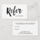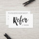 These simple and modern business referral cards feature trendy black handwritten script typography on a white background, for a casual and minimalist look your customer will love. This understated yet edgy look will work for almost any type of business, from a makeup artist, to a hair stylist, to a makeup artist, or even spa or retail. The back contains plenty of room for you to totally customise with your store or company information.