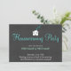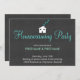 Add a modern edge to your housewarming party by sending out these adorable housewarming party invitations! The front of the invite has a dark textured background. At the top of the invitation is a cute white house icon, with hearts floating from the chimney. Customisable text allows you to add your own party details.