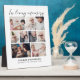 Pay tribute to a loved one who has passed away with this simple, modern memorial keepsake photo collage tabletop plaque on an easel stand, featuring 'In loving memory' in a handwritten script with 8 photos, your loved one's name, and their dates of birth and death (or other text). If you need any help customizing this, please message me using the button below and I'll be happy to help.