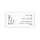 Celebrate your little one with our simple modern it's a boy RSVP return address label, featuring a minimalist black-and-white design that is modern and pretty. With its clean, boho-inspired aesthetic, the contemporary, gender-neutral vibe is perfect for welcoming a baby boy or girl in any season—whether it's fall, winter, spring, or beyond. This unisex design is effortlessly cute and fun and sets the tone for a stylish and minimal celebration! Please feel free to reach out with any questions regarding the product's design; we are happy to help!