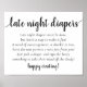 Fun way to give new parents advice and laughs with this vertical late night diapers well wishes table sign: Simple shower or gender reveal party flourish calligraphy sign featuring a fun, casual hand-lettered script. The classic design includes a modern handlettered quote typography overlay with poem. For coordinating colours or matching products, please visit the JustFharryn store at Zazzle.com All rights reserved. #zazzlemade
