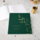 A minimalist emerald green and gold foil leaves wedding guest book. The modern calligraphy script font pairs beautifully with a traditional serif font and the leaf line art illustration.