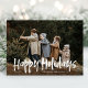 Simple Modern Lettering Two Photo Happy Holiday Card features a full bleed photo on the front, and another photo on the back with room for your longer message.