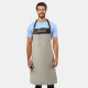 An simple, modern tan linen textured apron with a black textured band at the top, Personalise the apron with your name. Designed for you by Blackberry Boulevard.