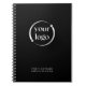 Personalise this simple modern notebook design by replacing the sample logo shown in the design template with your logo image. Brand your business, club, hobby or other pursuit easily with quality products. Shown here with a sophisticated modern black background, you can change the colour by selecting "edit using design tool" which opens the full editor for changing the background colours and moving text. Personalise the text template with your desired text.