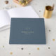 This simple, minimalistic, and modern wedding guestbook features a monogram with modern lettering in gold on midnight blue / navy blue background. You can find matching products at my store.