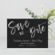 This invitation features a faux silver foil effect with a chalkboard black background. "Save the Date" appears in a faux silver foil effect but does not print silver foil. Please note: "Save the Date" and its graphics cannot be changed, edited, or deleted. You are able to customise this invitation by adding a photo to the back of the card if you would like. You can personalise/customise the couples' names and some text including the date and location. You can even change the background colour from chalkboard to any colour you like.