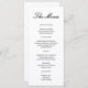 Designed to complement any wedding theme or decor, this menu card features a clean and minimalist layout adorned with classic script typography for a touch of refinement.