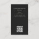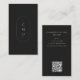 This sophisticated business card features a stacked monogram in an oval frame on the front, with your business name, title, and contact details on the reverse — including a scannable QR code that links directly to your website or portfolio. The black background and refined serif typography give it a high-end, editorial feel that stands out in any stack. Perfect for designers, photographers, consultants, and creative business owners who want a card that works as hard as they do.