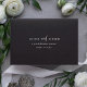 These elegant, dark black wedding rsvp envelopes are simple and minimalist yet very stylish due to the modern text and clean layout. Your pre-printed return address goes onto the front.