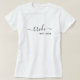 Modern minimalist Bride t-shirt with "bride" and established wedding date in beautiful script typography printed across the front. Cute and simple bride tshirt in a chic black and white script is the perfect anniversary gift or wedding keepsake for the bride. Makes a great bridal shower, bachelorette party or wedding gift for the future bride!