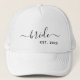 Modern minimalist Bride hat with "bride" and established wedding date in beautiful script typography printed across the front. Cute and simple bride hat in a chic black and white script is the perfect anniversary gift or wedding keepsake for the bride. Makes a great bridal shower, bachelorette party or wedding gift for the future bride!